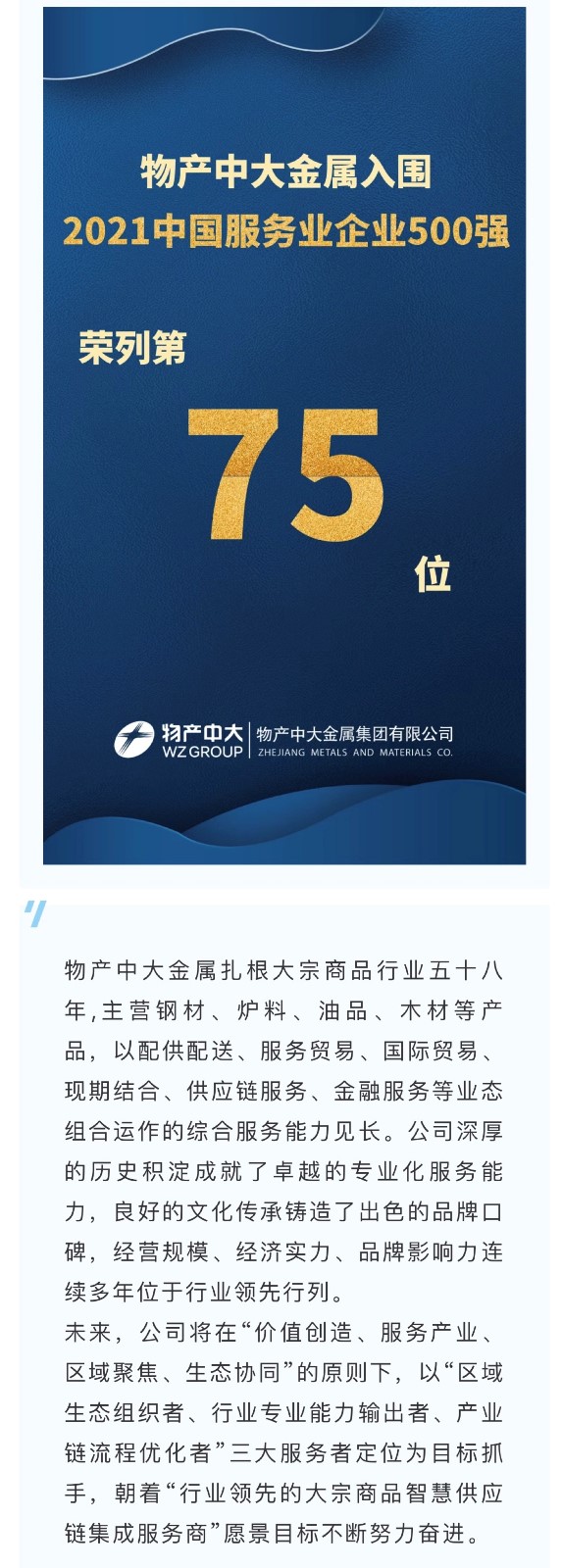 喜报 | 物产中大金属荣列2021中国企业500强第188位、2021中国服务业企业500强第75位