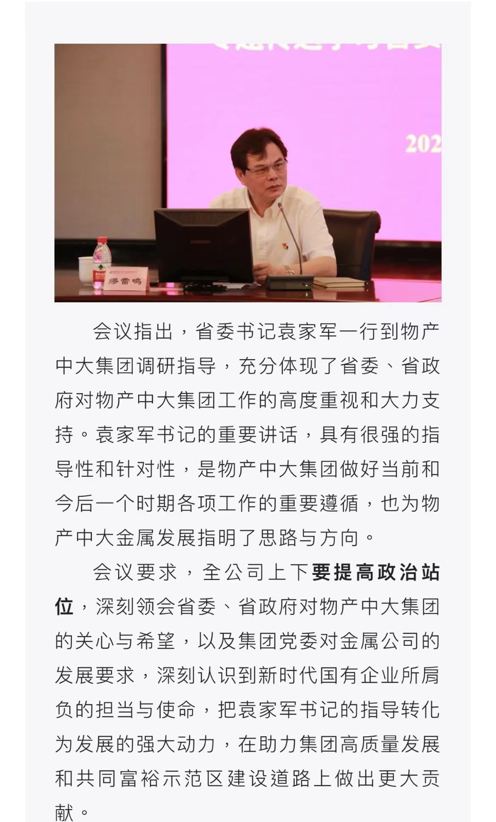 物产中大金属专题学习贯彻袁家军书记调研物产中大集团重要讲话精神