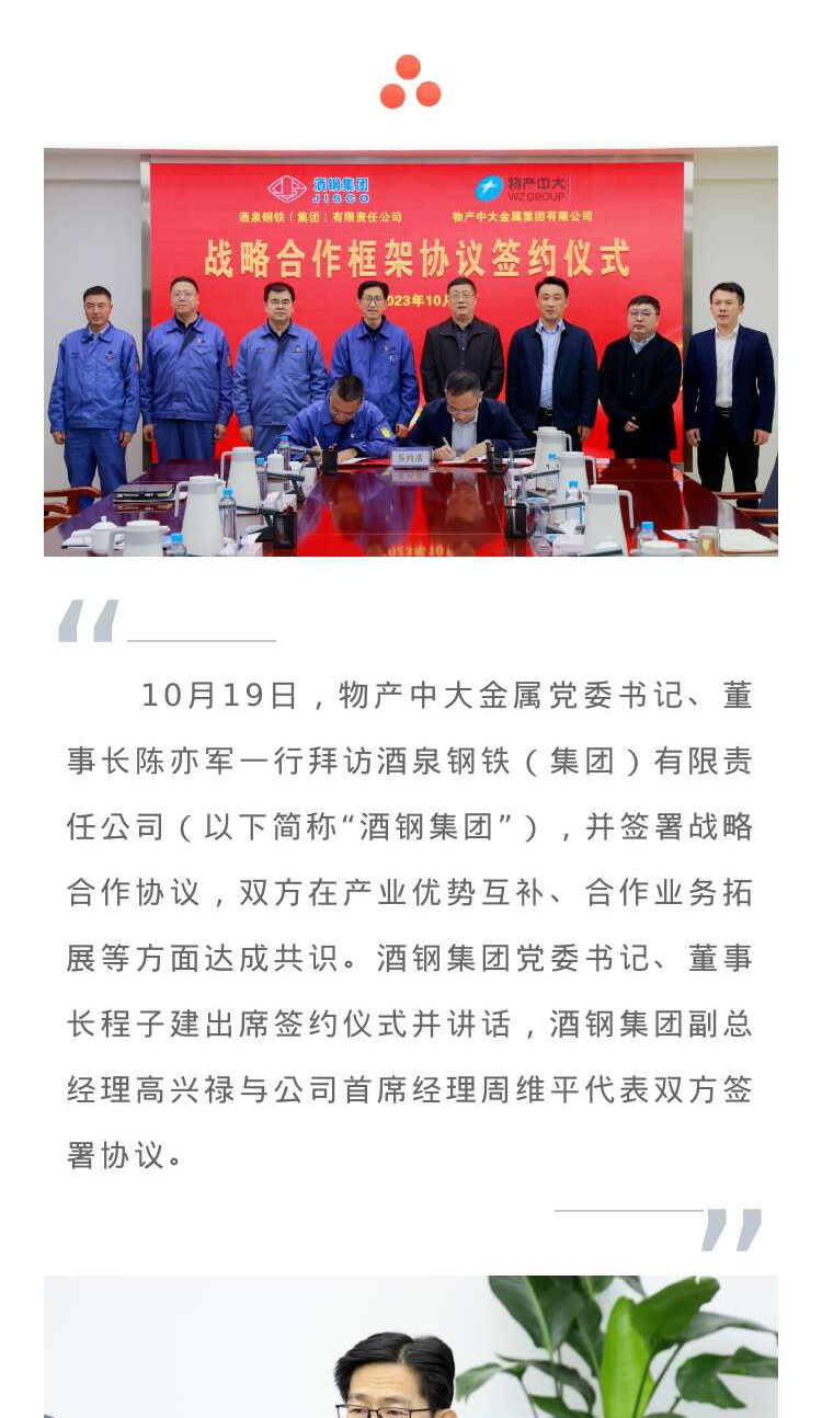物产中大金属与酒钢集团签署战略合作协议