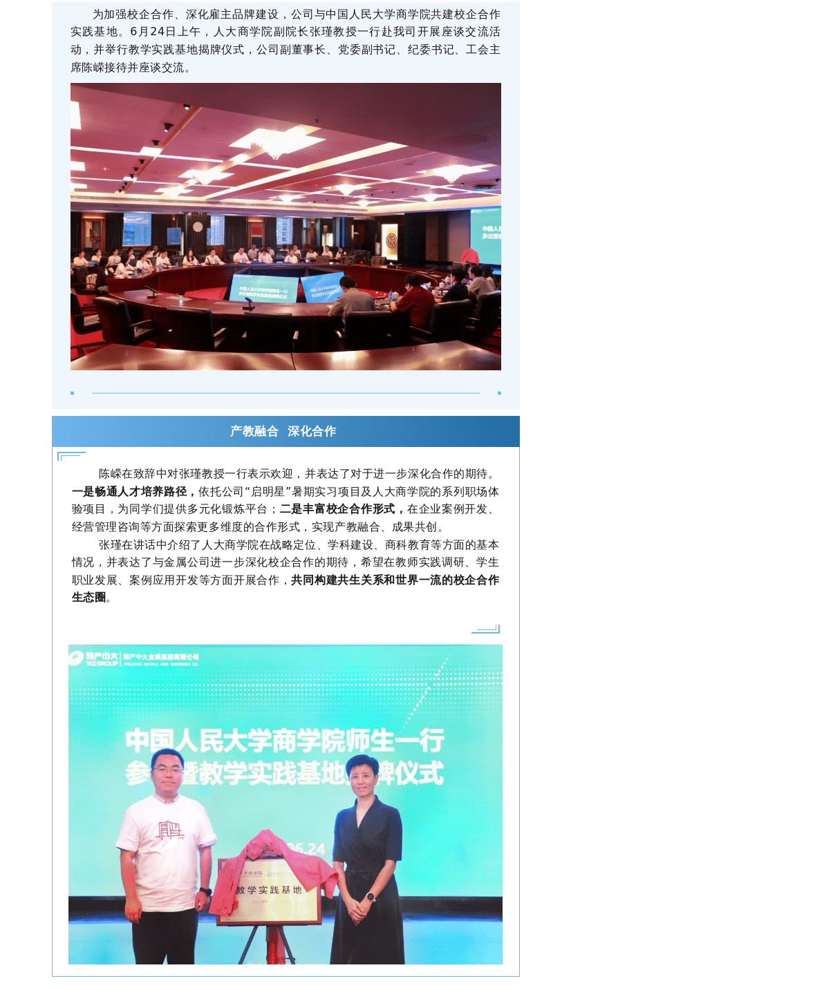 校企合作 | 物产中大金属与人大商学院共建教学实践基地