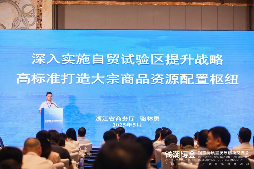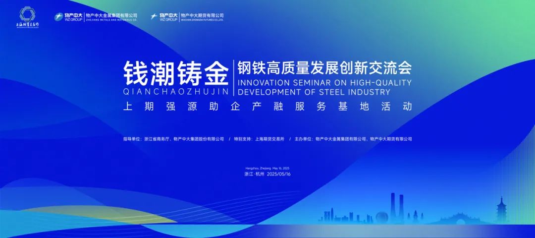2025年5月16日,由浙江省商务厅、物产中大集团指导,上海期货交易所特别支持,物产中大金属与物产中大期货主办的“钱潮铸金——上期强源助企产融服务基地活动之钢铁高质量发展创新交流会”在杭州成功举行?;嵋榛憔凵虾F诨踅灰姿?、浙江省商务厅、五十余家产业链龙头企业以及研究机构代表,围绕钢铁行业产融结合创新路径展开深度研讨。